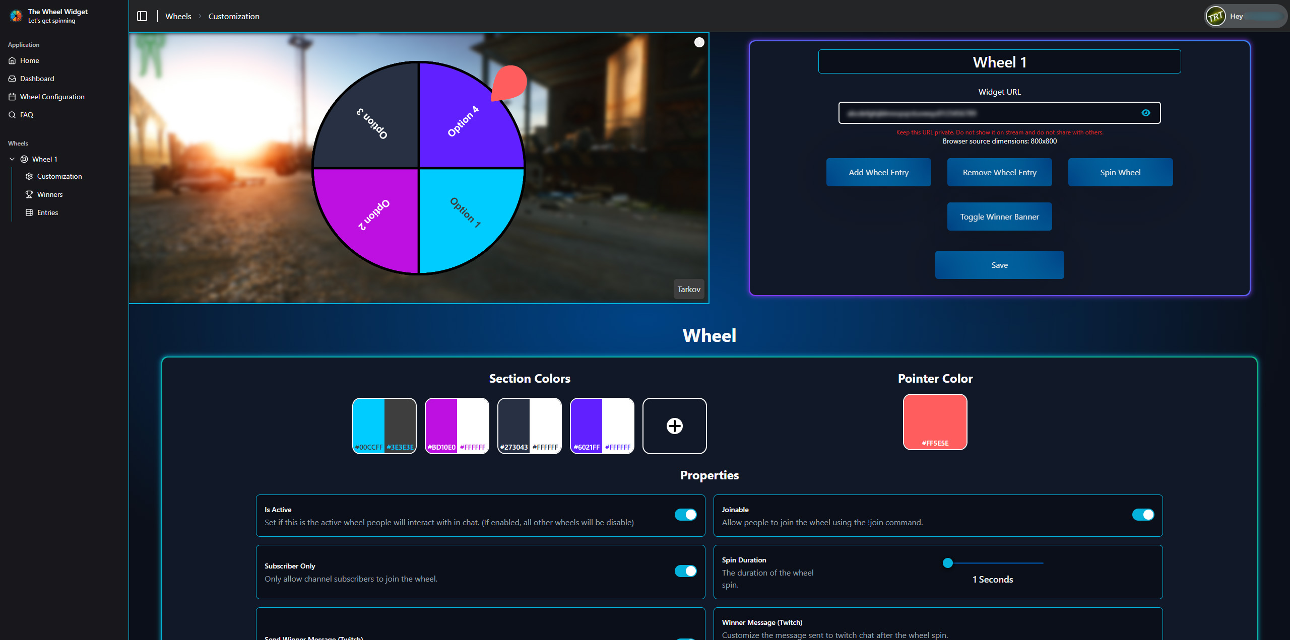 Wheel Widget is an interactive streaming tool that allows Twitch viewers to participate in live giveaways or events directly through chat. Viewers can join a spinning wheel through a chat command, and the streamer can display the wheel live on their stream using a browser source. When the wheel spins, viewers can watch in real time as the winner is selected. The project originally began as a tool built for a specific streamer who wanted a simple way to run interactive giveaways with their audience. At the time, the streamer had a much smaller community, but the channel has since grown significantly and is now one of the larger communities on the platform. Building the tool early on required designing it in a way that could handle growth and increased participation over time. From the beginning, the main focus of the project was functionality and reliability rather than visual polish. The goal was to create a system that worked consistently during live broadcasts, even when large numbers of viewers attempted to join at the same time. The UI was intentionally kept simple so that most of the effort could be directed toward building a stable backend system and reliable real-time communication between chat, the backend service, and the browser overlay.